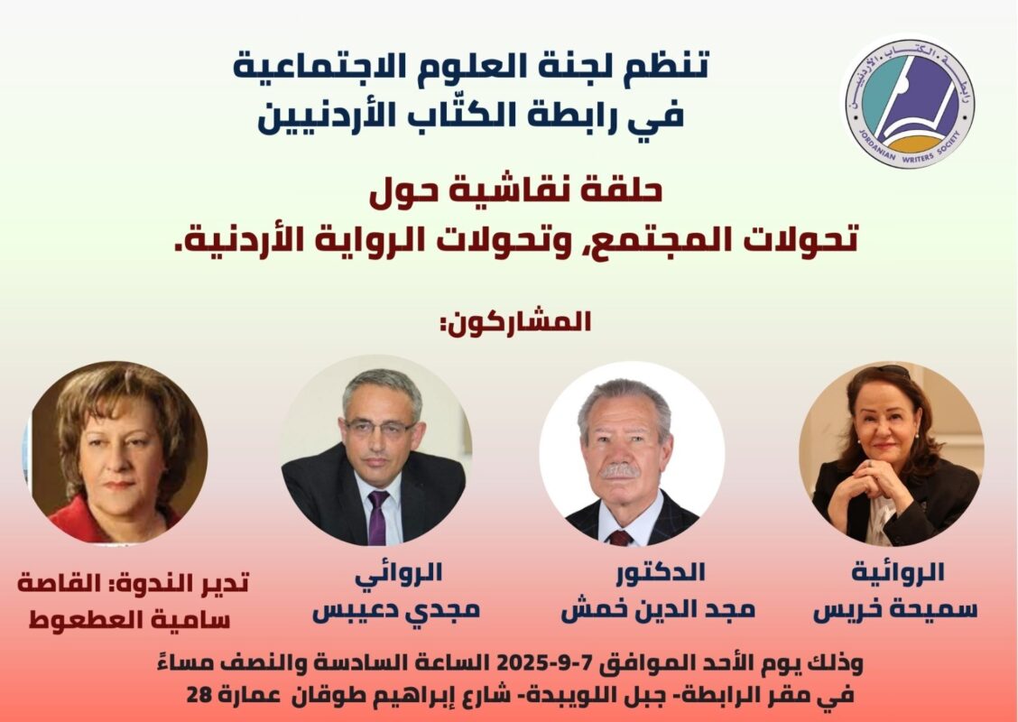 03 سبتمبر أخبار الرابطة حلقة نقاشية حول تحولات المجتمع، وتحولات الرواية الأردنية Posted by Naser Hamam 3 سبتمبر 2025 0 Continue reading